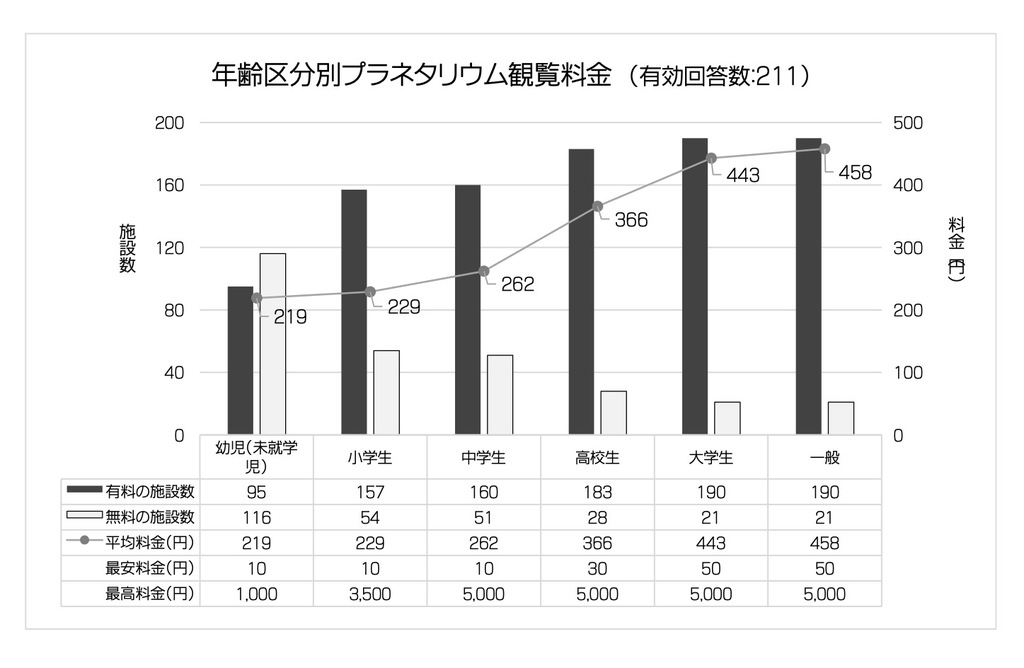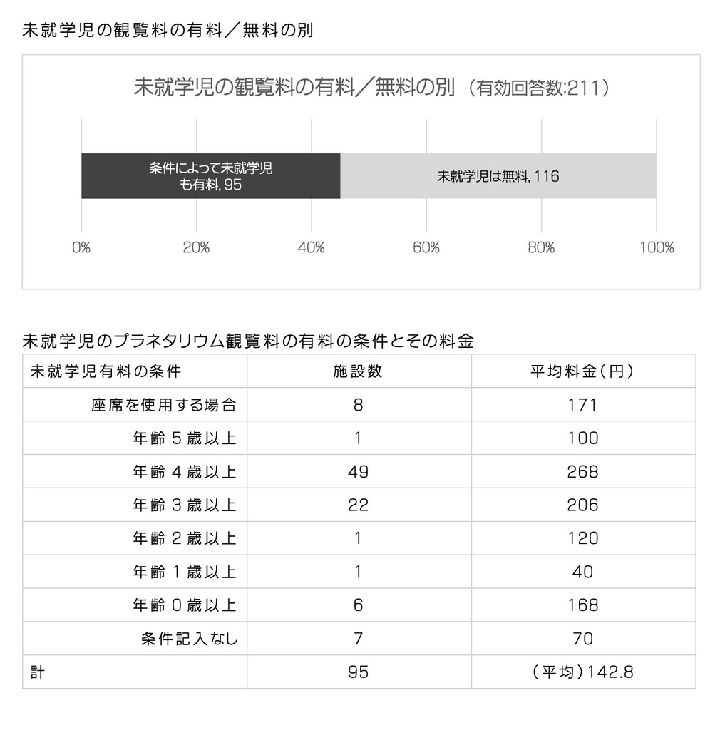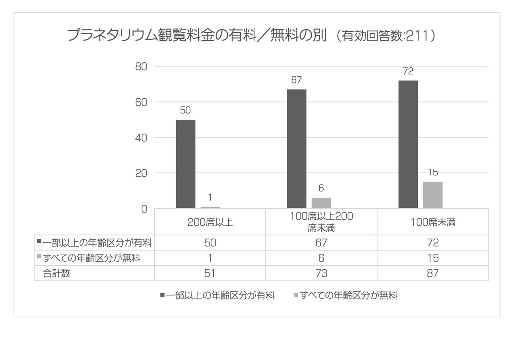 プラネタリウム観覧料金の有料/無料 クリックすると大きくなります。