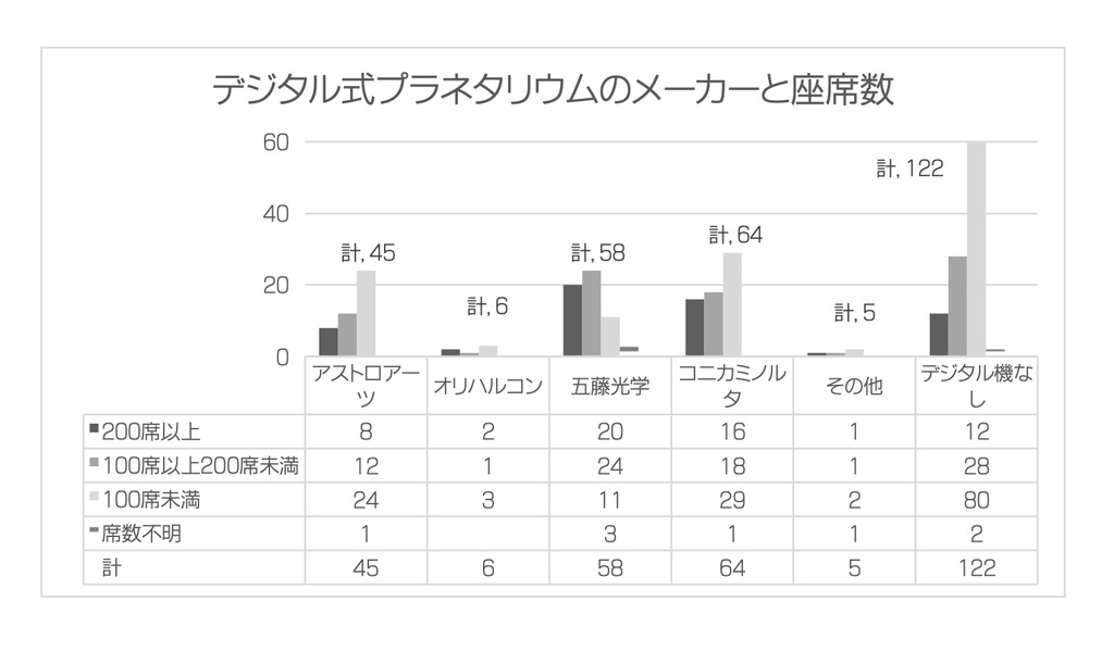 デジタル式プラネタリウムのメーカーと座席数 クリックすると大きくなります。
