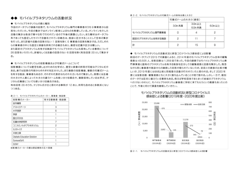 プラネタリウムデータブック2020 2023年3月 発行 日本プラネタリウム協議会 編集 日本プラネタリウム協議会 データブック編集担当 毛利 勝廣 田中 里佳 角田 佳昭 星海堂 日本プラネタリウム協議会ホームページ内 https://planetarium.jp/public/databook/2020