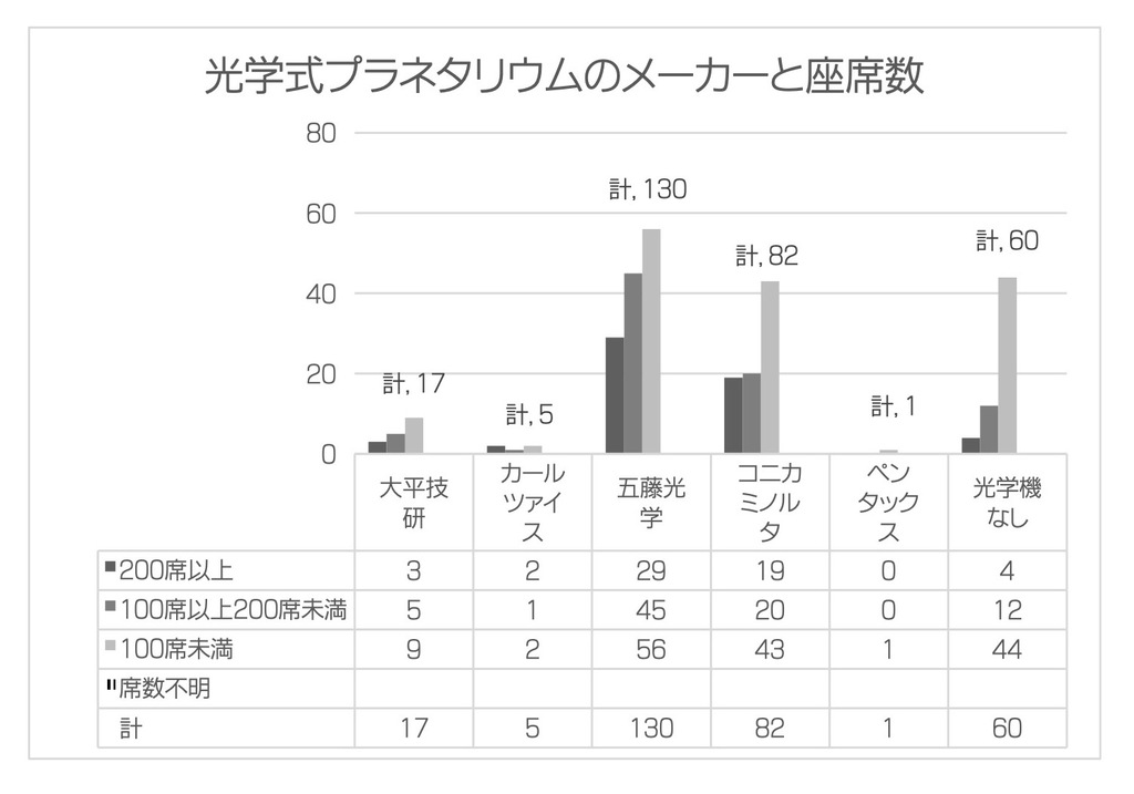 光学式プラネタリウムのメーカーと座席数 クリックすると大きくなります。